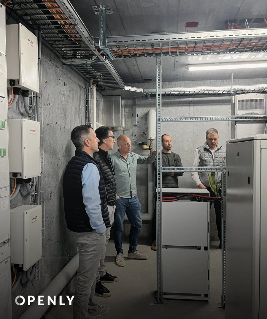 Heat storage tanks (water tanks) are filled when sufficient energy is available, for example when the sun is shining brightly. The OPENLY OS, a control system based on Eisbär software, monitors the building, integrates weather forecasts and optimizes the use of energy efficiently and in line with demand. Batteries provide support.